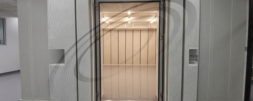 典型的應(yīng)用場景如測試麥克風(fēng)、聽力保護(hù)設(shè)備、Hi-Fi設(shè)備等。大型或重型設(shè)備無法進(jìn)入全消聲室或測試場景本身發(fā)生在反射平面或地板上時,有硬質(zhì)全反射地板的半消聲室是最好的解決方案。IAC聲學(xué)公司建造的高精度半消聲室與我們建造的全消聲室具有相同的建筑規(guī)格,不同之處是地面無尖劈,共有五個反射面。